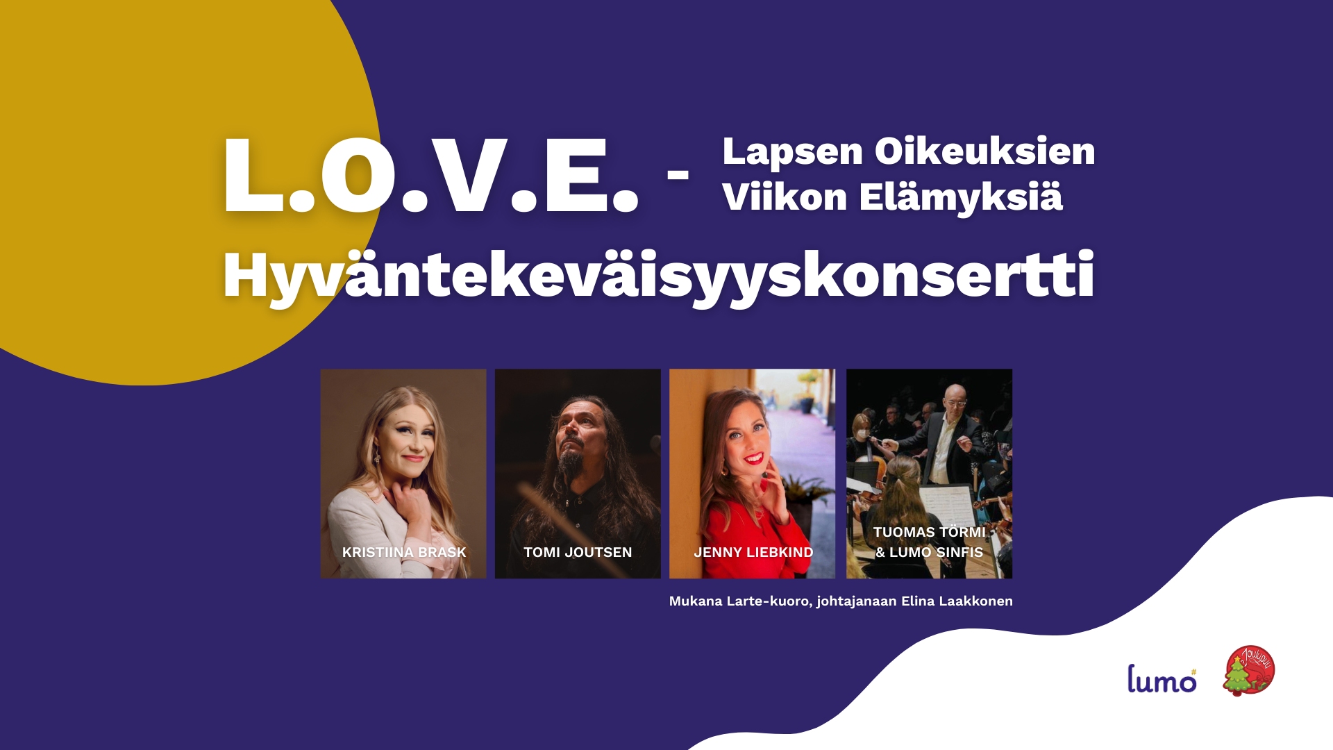 L.O.V.E. on osa Lapsen Oikeuksien Viikkoa, ja tapahtuman nimi kumpuaa juuri tästä tärkeästä teemasta. Konsertin tuotto ohjataan Joulupuu-keräykseen, jonka kautta tuetaan alueen lapsiperheitä joulun alla.