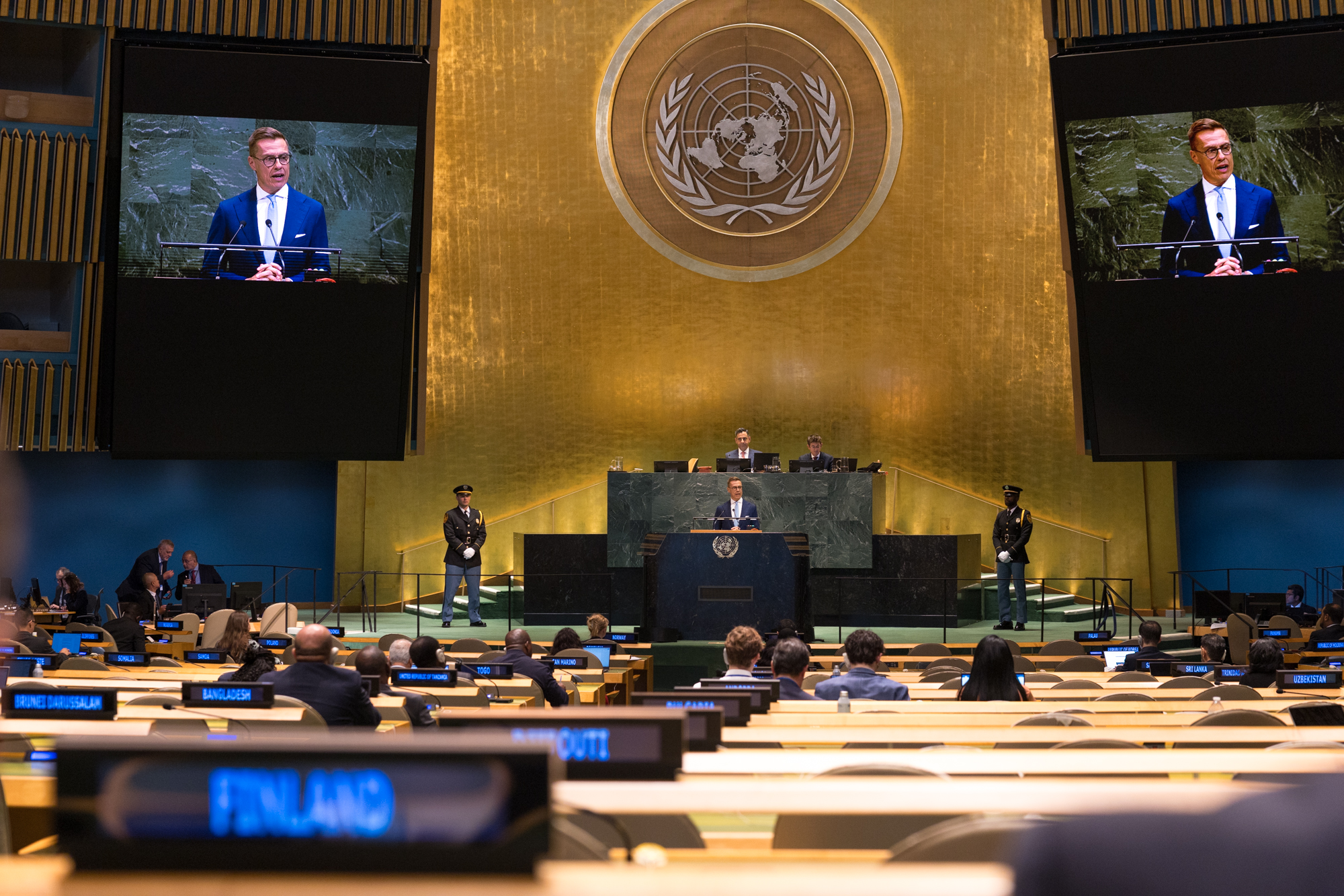 Tasavallan presidentti Alexander Stubb on toiminut aktiivisesti monenvälisyyden, ihmisoikeuksien, demokratian ja oikeusvaltion puolestapuhujana. Hänen laaja-alainen kokemuksensa niin kotimaassa kuin kansainvälisesti sekä arvopohjainen johtajuus vahvistavat Suomen profiilia YK:ssa ratkaisuhakuisena, rakentavana ja arvoihin pohjaavana toimijana.