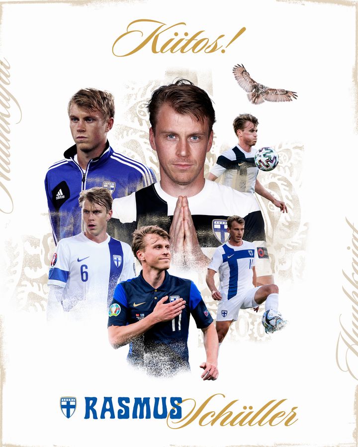 79 A-maaottelua Huuhkajien keskikentällä pelannut Rasmus Schüller, 34, lopettaa maajoukkueuransa.
