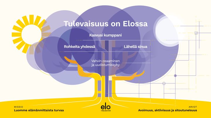 Olemme Elo, suuri suomalainen työeläkevakuuttaja. Huolehdimme, että asiakkaamme saavat ansaitsemansa eläkkeet. Autamme asiakasyrityksiämme menestymään ja vastaamaan muuttuvan työelämän haasteisiin. Hoidamme asiakkaidemme eläkevaroja tuottavasti, turvaavasti ja vastuullisesti. Sijoitusvarat on hyvin hajautettu kansainvälisesti ja eri omaisuusluokkiin. Ne turvaavat eläkkeet ja luovat pohjaa kestäville tuotoille vuosikymmeniksi eteenpäin.