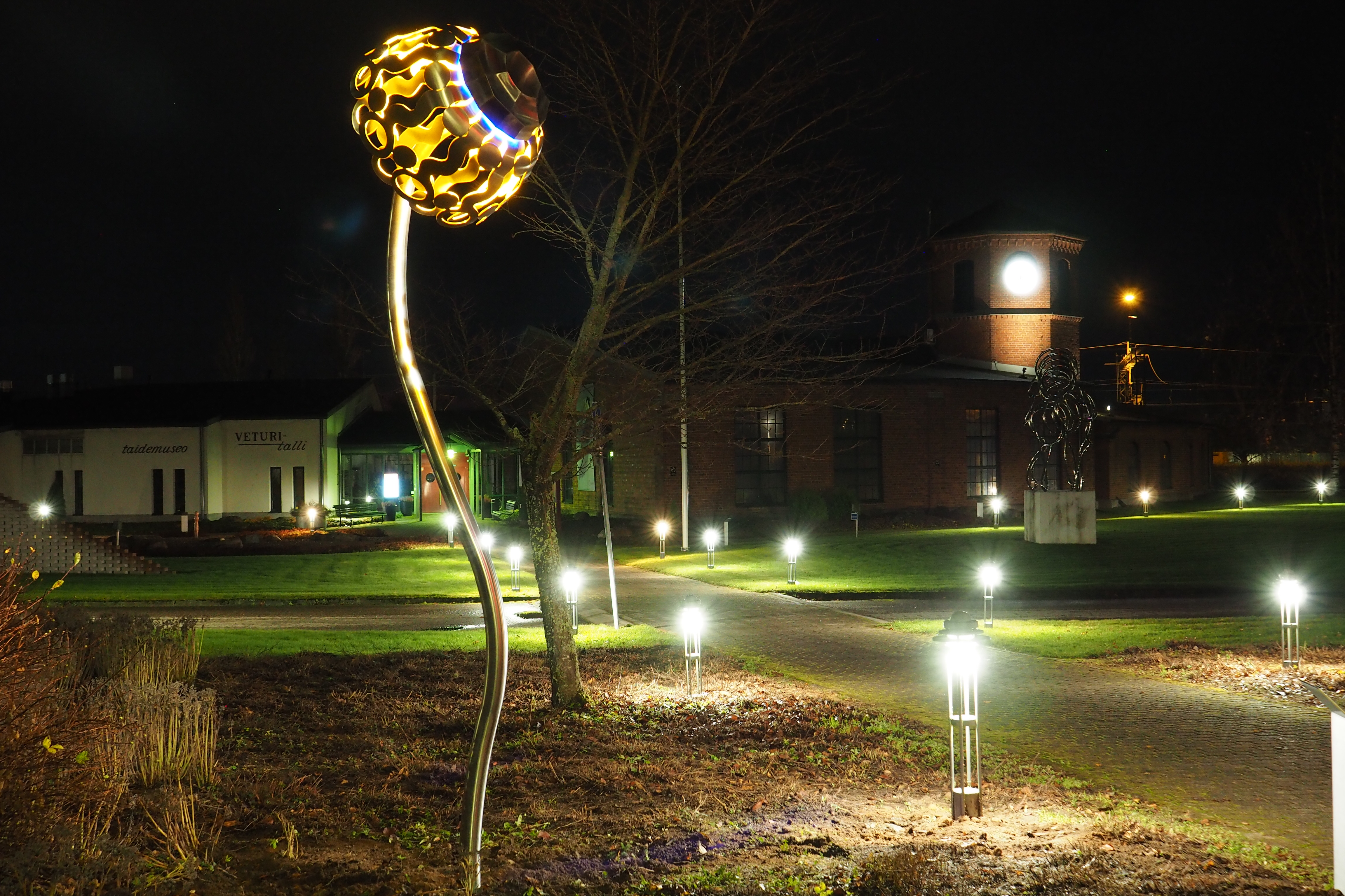 Kuvataiteilija Jukka Lehtisen uusi julkinen taideteos Illakko on noussut valaisemaan Salon taidemuseo Veturitallin veistospihaa.