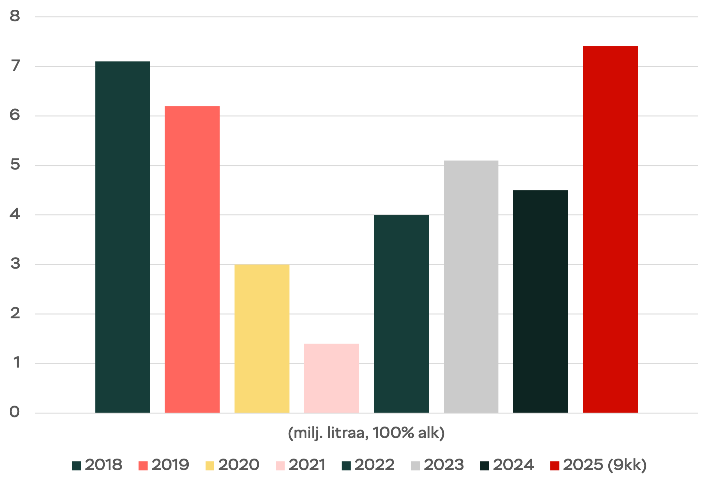Uusien lukujen mukaan matkustajatuonti ja verkkokauppaostot ovat nyt määrältään suurempia kuin kotimainen anniskelu ja Alkon myynti yhteensä. Tämä korostaa, kuinka vakava tiedonpuute on ja miten poliittisia päätöksiä joudutaan tekemään ilman vertailukelpoista ja ajantasaista tietoa.