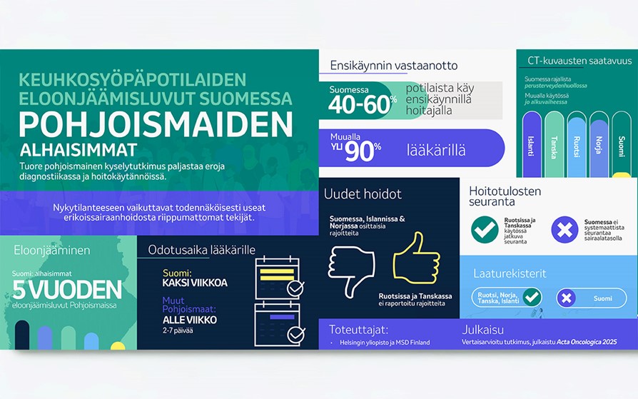 Studien Comparative study of lung cancer care and survival outcomes across the Nordic countries genomfördes av Helsingfors universitet, FILHA ry, Vasa centralsjukhus, MSD Finland och flera nordiska samarbetsparter inom hälso- och sjukvården. 42 legitimerade personer inom hälso- och sjukvården med specialisering i lungcancer deltog i studien 2023–2024. Studien har referentgranskats och publicerats i vetenskapstidskriften Acta Oncologica 2025.