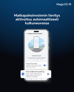 MagicOS 10 esittelee myös matkapahoinvointia helpottavan Motion Sickness Relief -ominaisuuden, joka aktivoituu automaattisesti matkan aikana ja tekee laitteen käytöstä miellyttävämpää liikkeellä ollessa. Turvallisuutta parantava AI Deepfake Detection -toiminto hyödyntää älykästä analyysiä tunnistaakseen mahdollisesti manipuloidun mediasisällön ja suojatakseen käyttäjiä esimerkiksi videokokouksissa tai sisältöä jaettaessa. Myös äänenlaatu paranee, sillä MagicOS 10 tukee nyt korkean resoluution Bluetooth-formaatteja – yhteensopivien kuulokkeiden kanssa ääni on täyteläisempi ja yksityiskohtaisempi.