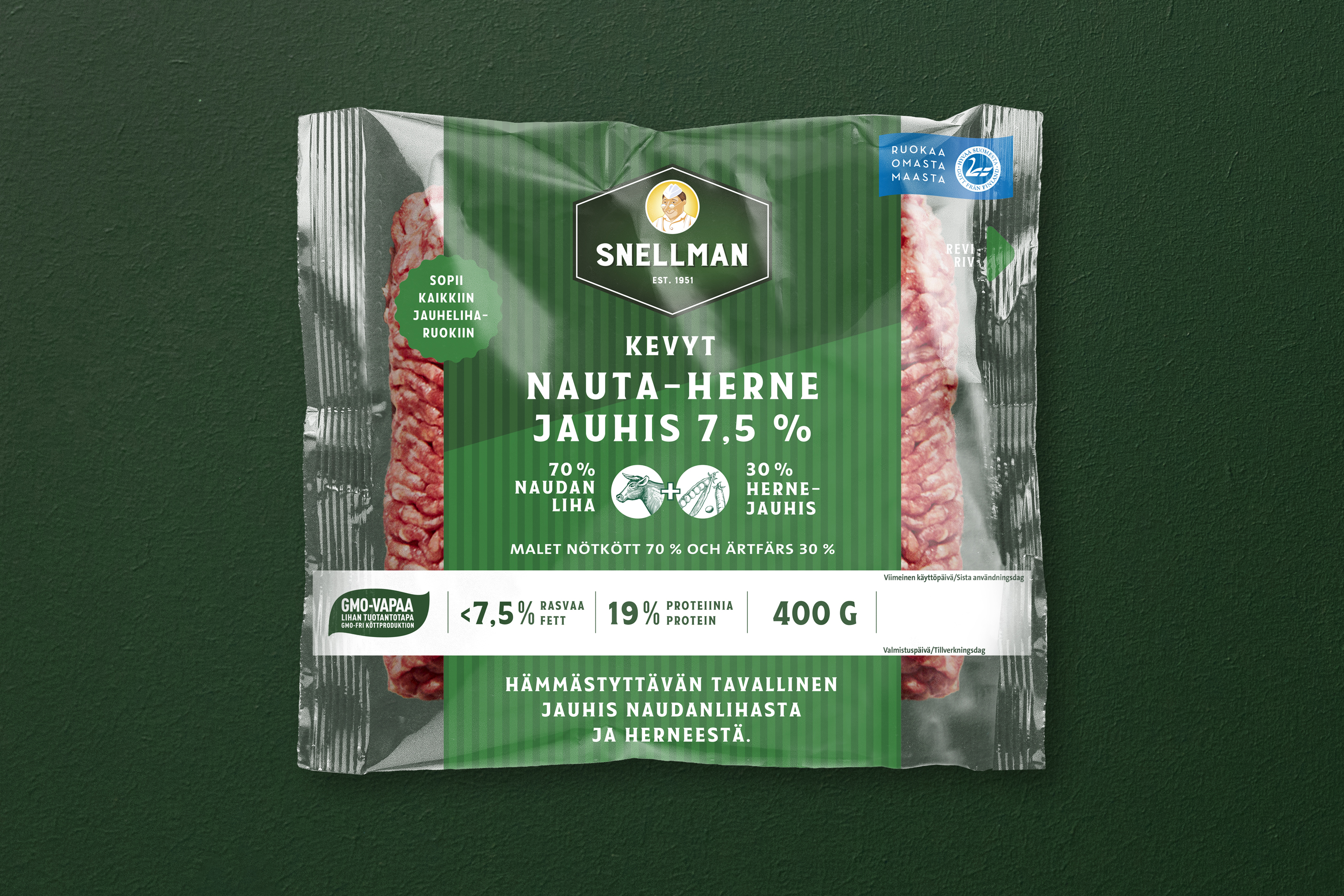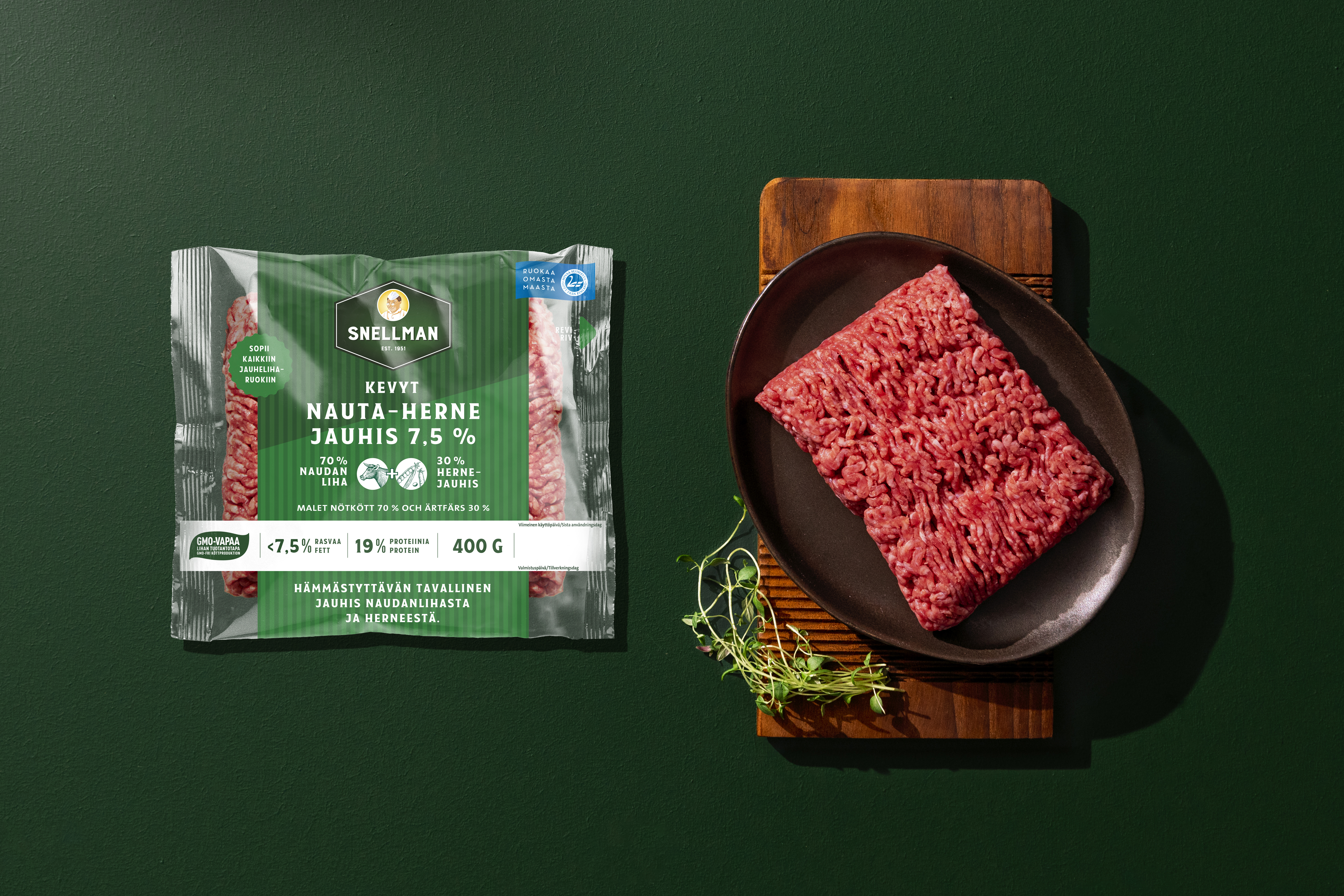 Malet kött är en av de mest använda råvarorna i finländska hemmakök och ingår i många favoriträtter. Snellman lanserar nu som första företag i Finland ett nytt alternativ till traditionellt malet kött. Malet nötkött och ärtfärs 7,5% består av 70 procent finländskt nötkött och 30 procent ärtfärs. Produkten är proteinrik och innehåller endast 7,5 procent fett.