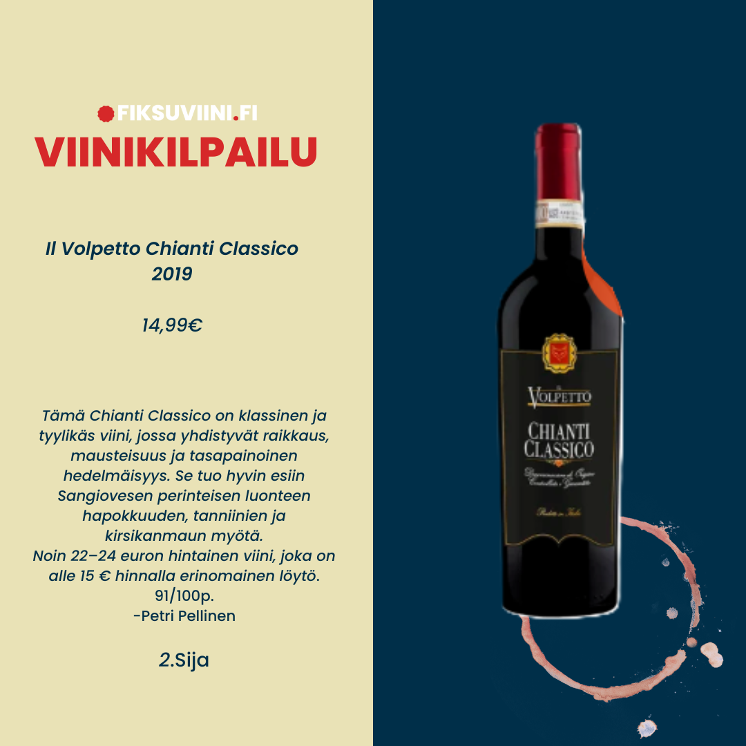 "Il Volpetto Chianti Classico 2019 hurmasi tammen ja hedelmän tasapainoisella yhdistelmällä – uskomatonta, että hyvän Chianti Classico -viinin voi saada näin edullisesti."