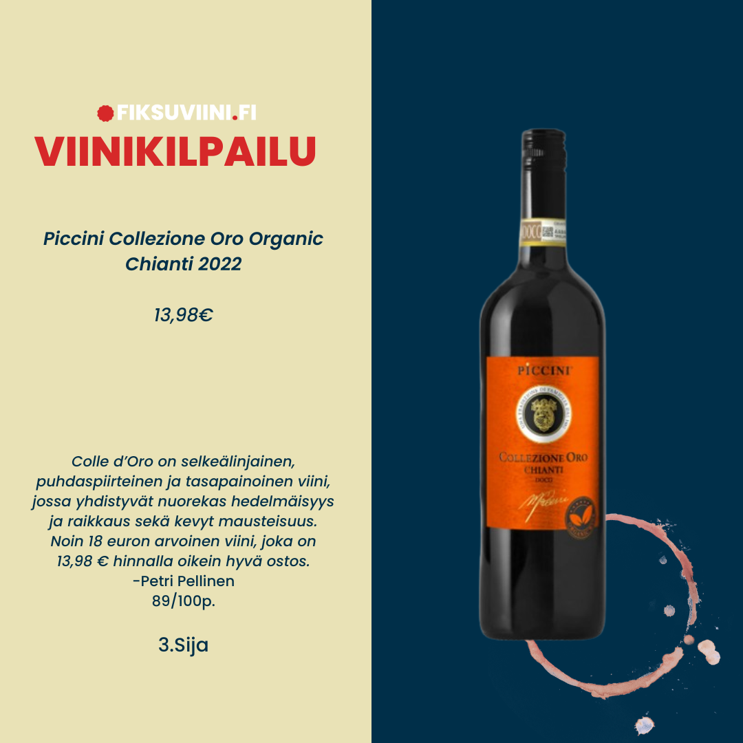 "Piccini Collezione Oro Organic Chianti 2022 edusti erittäin rehellistä ja hyvin tehtyä Chiantia: konstailematon, mutta omassa yksinkertaisuudessaan erinomainen. Tyyli, joka erottui edukseen.”