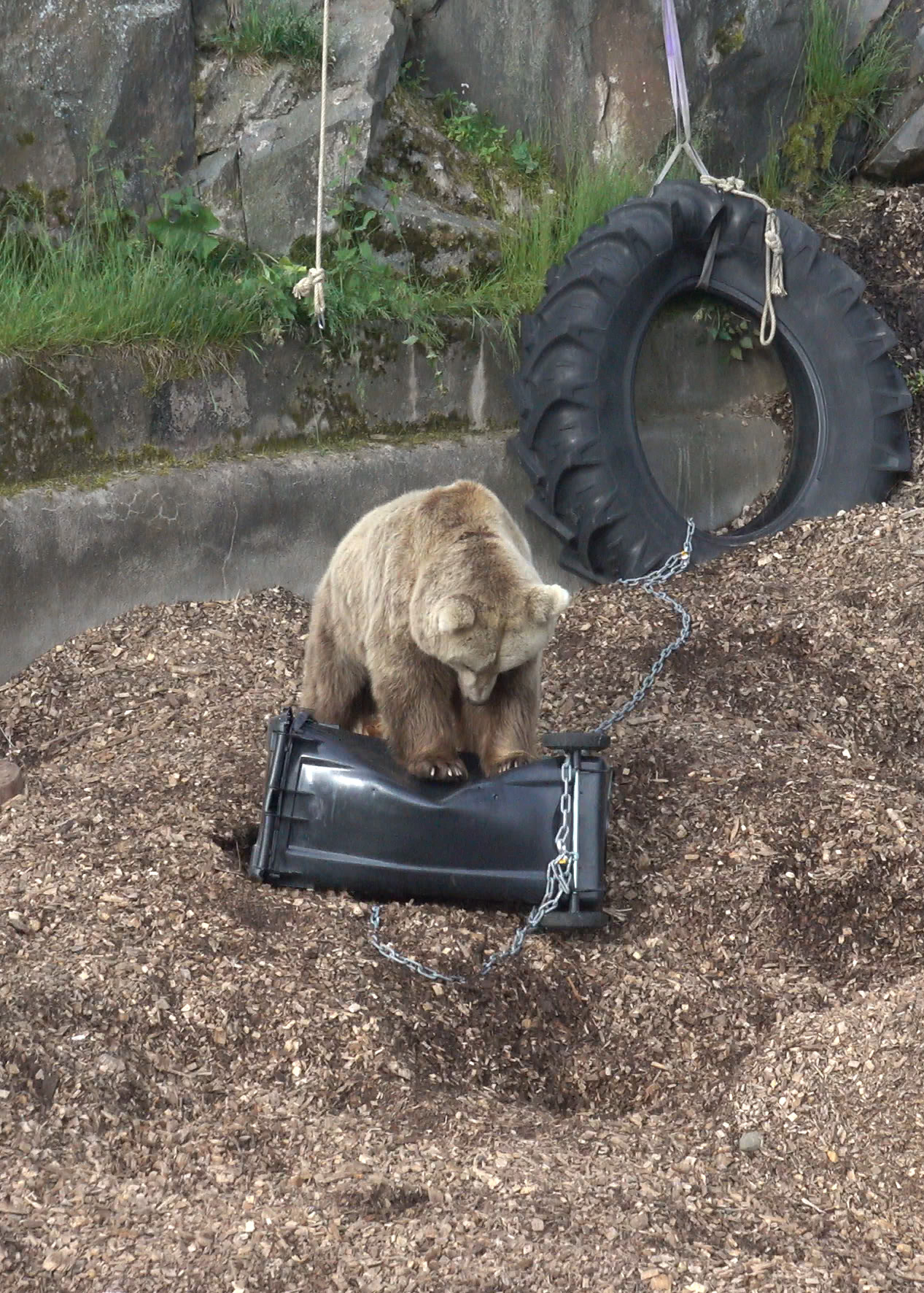 – Karhut yrittivät sinnikkäästi päästä herkkujen kimppuun, mutta kumpikaan ei onnistunut avaamaan astioiden kansia. Kevyempi 240 litran astia sai kyllä testissä uuden muodon, mutta kansi ei auennut, kertoo hirvitalousalue- ja suurpetosuunnittelija Kai-Eerik Nyholm Suomen riistakeskuksesta.