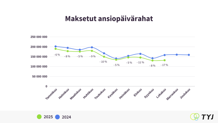 Ansiopäivärahakulut laskivat lokakuussa 17 %