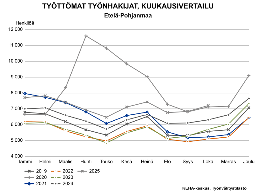 Etelä-Pohjanmaalla marraskuun lopussa 7385 työtöntä työnhakijaa23.12.2025 08:00:00 EET | Tiedote