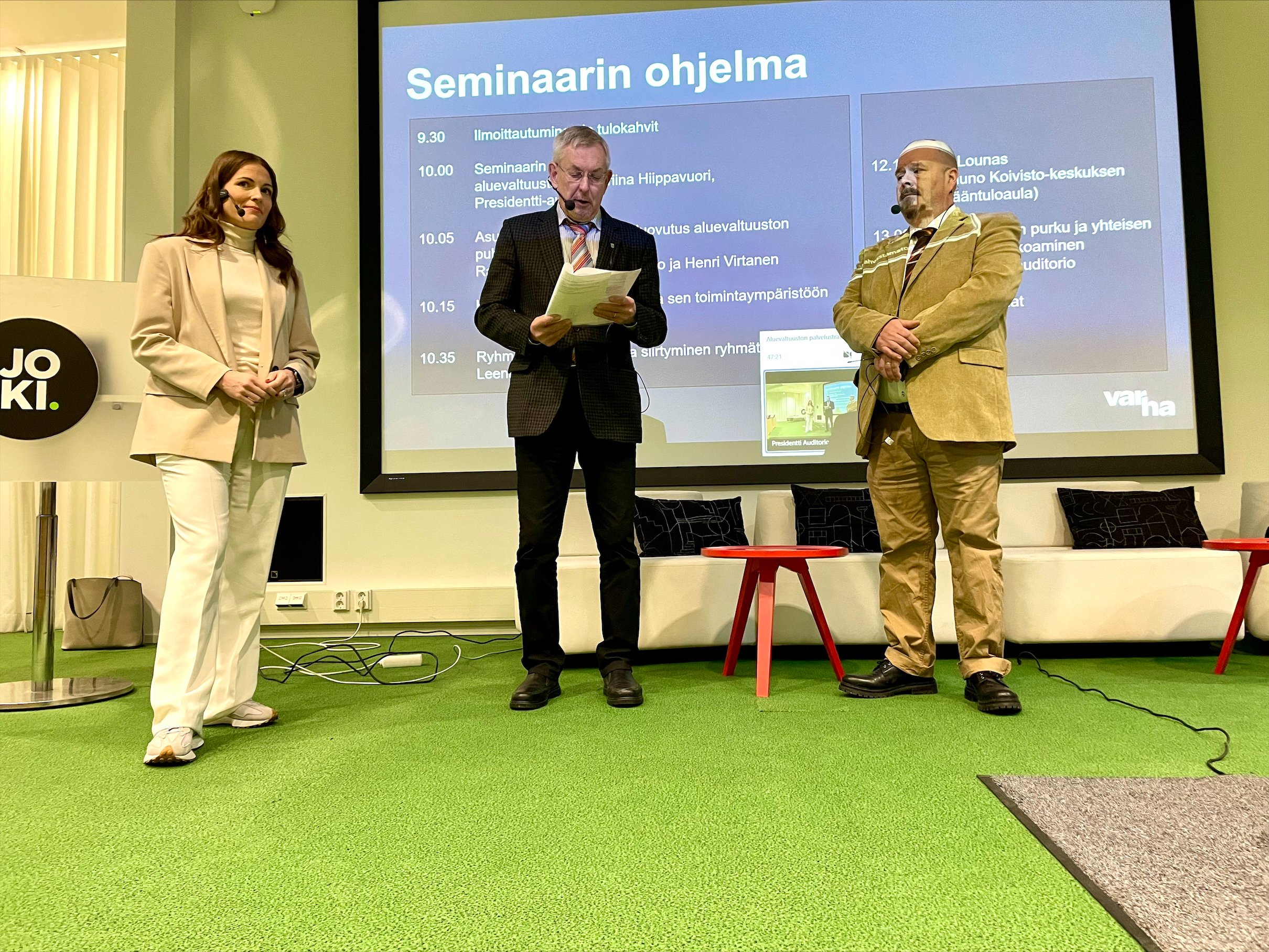Representanterna som medlemmarna i invånarrådet hade valt bland sig, Matti Ankelo och Henri Virtanen, berättade om invånarrådets arbete och ställningstagandets innehåll för ledamöterna i välfärdsområdesfullmäktige som hade sammanträtt för ett seminarium för välfärdsområdesfullmäktige.