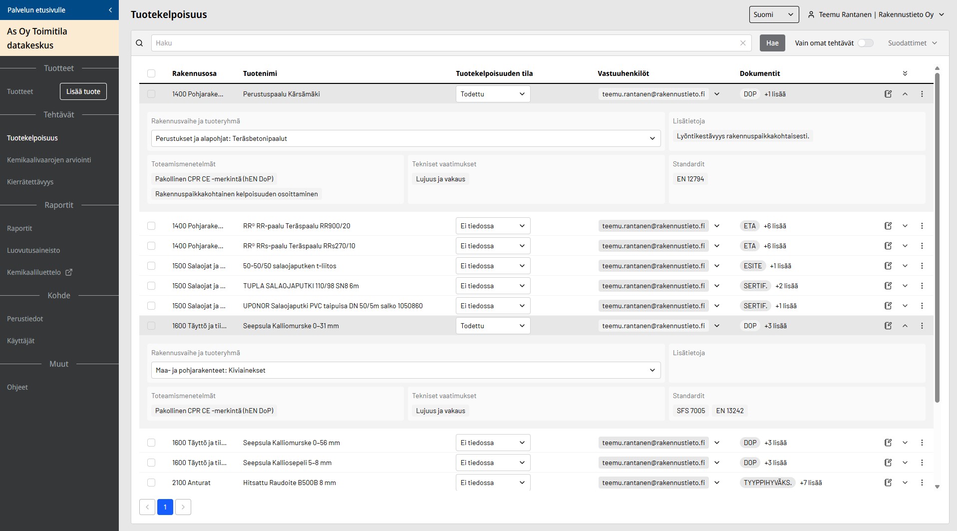”Rakennustuoteluettelon laatiminen edellyttää tarkkaa ja järjestelmällistä tiedonhallintaa. Tuotetieto hallintapalvelu 2.0 tarjoaa markkinoiden sujuvimman ja tehokkaimman tavan toteuttaa luettelo lain edellyttämällä tavalla. Halusimme tarjota rakennusalan toimijoille työkalun, joka tekee myös tämän vaatimuksen täyttämisestä vaivatonta ja vähentää manuaalista työtä”, kertoo Rakennustiedon tuotepäällikkö Teemu Rantanen.
