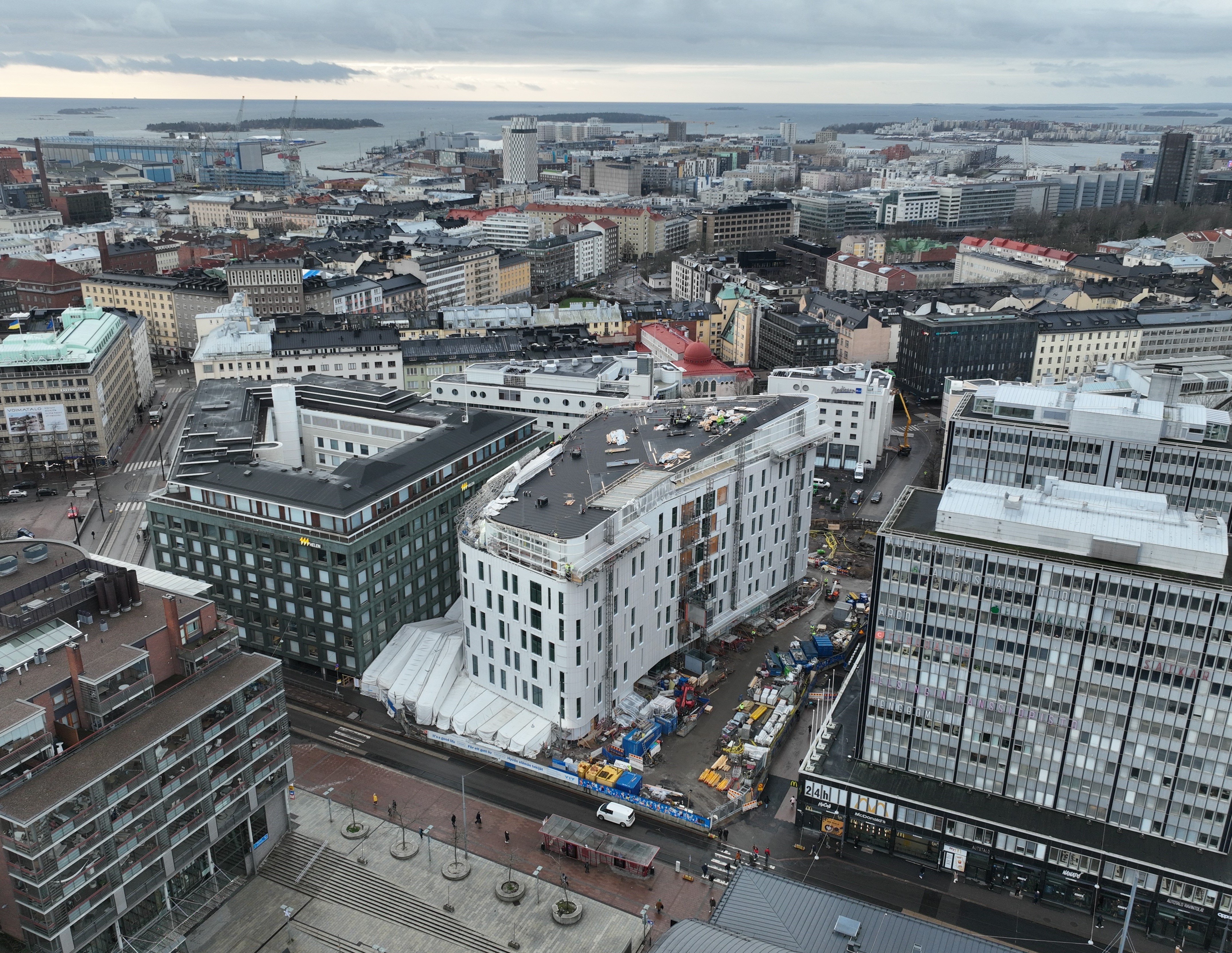 Työmaa toimii erityisen haastavalla ja vilkkaalla paikalla, keskustan arvorakennusten vieressä, toiminnassa olevan metroaseman ja joukkoliikennetunnelin yhteydessä.