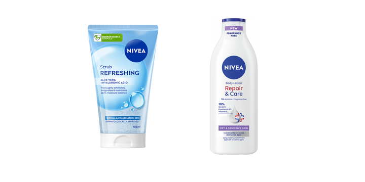 NIVEA tuo keväällä 2026 NIVEA Repair & Caren vaihtoehdoksi suosittuun hajusteettomien tuotteiden kategoriaan. NIVEA Refreshing Scrub -kuorintavoide puolestaan puhdistaa, tasoittaa ja virkistää kasvojen ja kaulan ihoa.