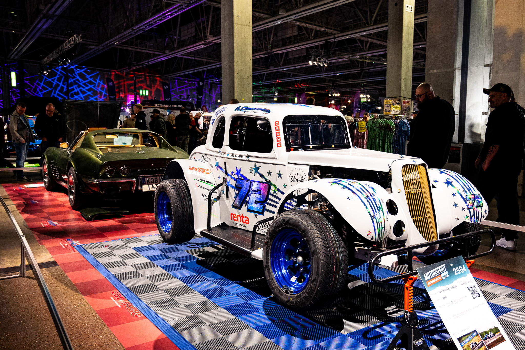 Motorsport-näyttelyosio Helsingin Messukeskuksen hallissa seitsemän.