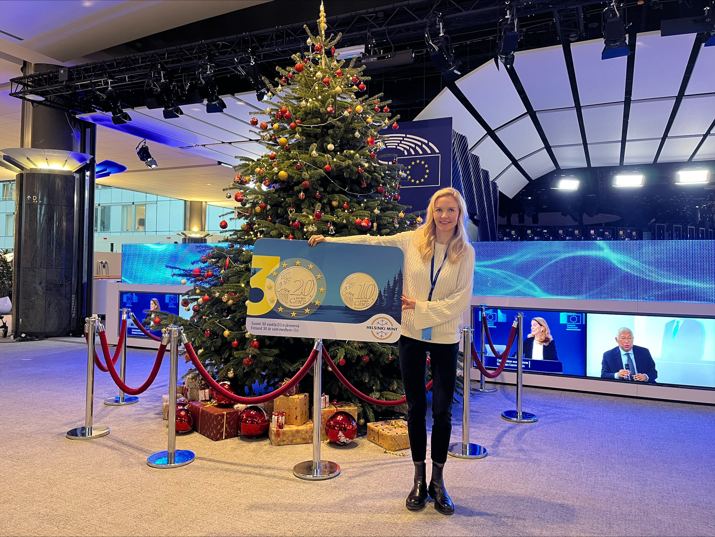 Tänään Europarlamentaarikko Aura Salla sai Brysselissä erityisen huomionosoituksen Suomen 30-vuotisen EU-jäsenyyden kunniaksi. Helsinki Mint on lanseerannut tätä merkkipaalua juhlistamaan erityisen 30 sentin kolikkokortin, joka on nyt saatavilla osoitteessa www.helsinkimint.fi.