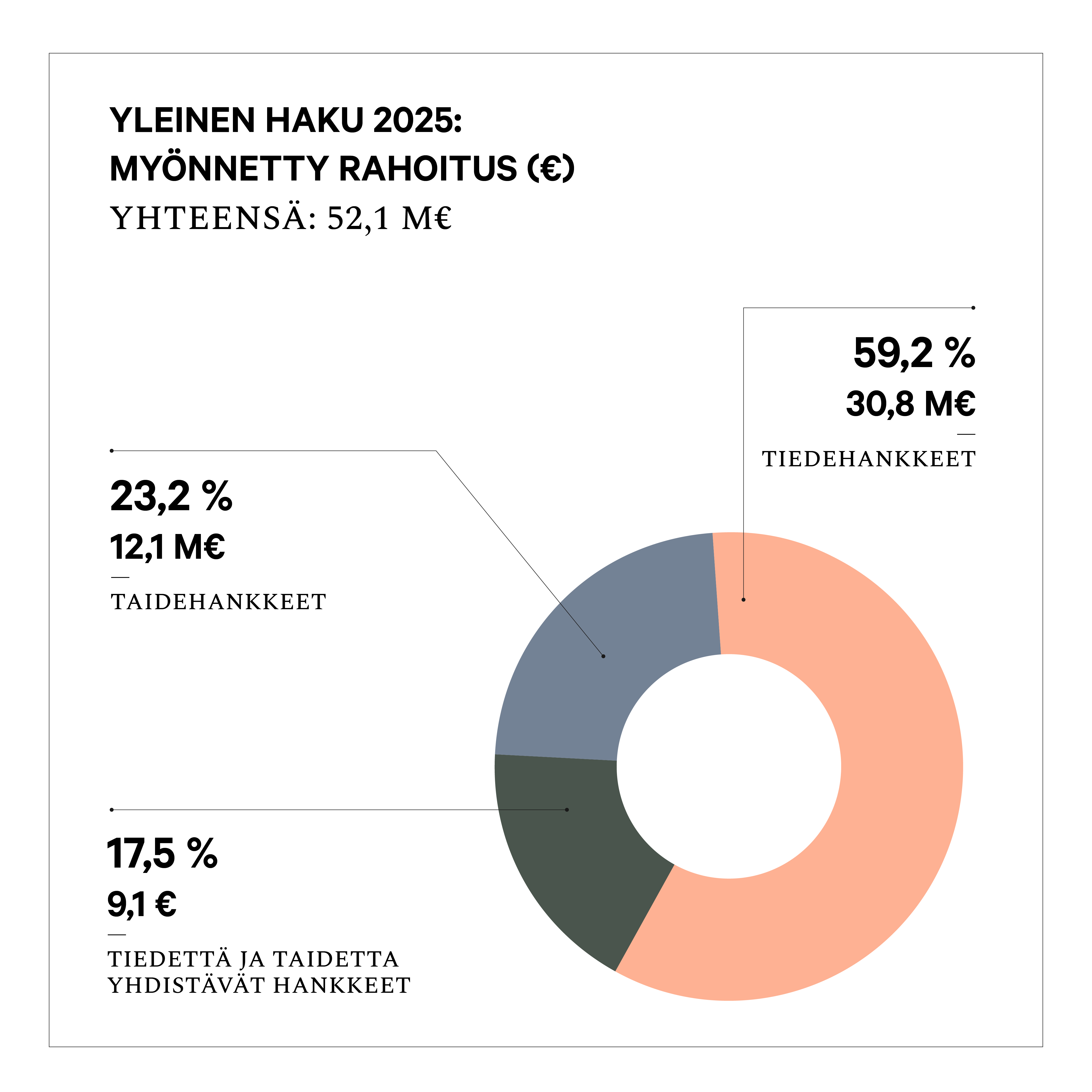 "Pelkästään säätiön yleisissä hauissa on vapaalle tieteelliselle ja taiteelliselle työlle 2020-luvulla myönnetty noin 265 miljoonaa euroa, mikä on merkittävä panostus koko suomalaisen kulttuurin kannalta", sanoo Koneen Säätiön tiede- ja taiderahoituksen johtaja Kalle Korhonen.