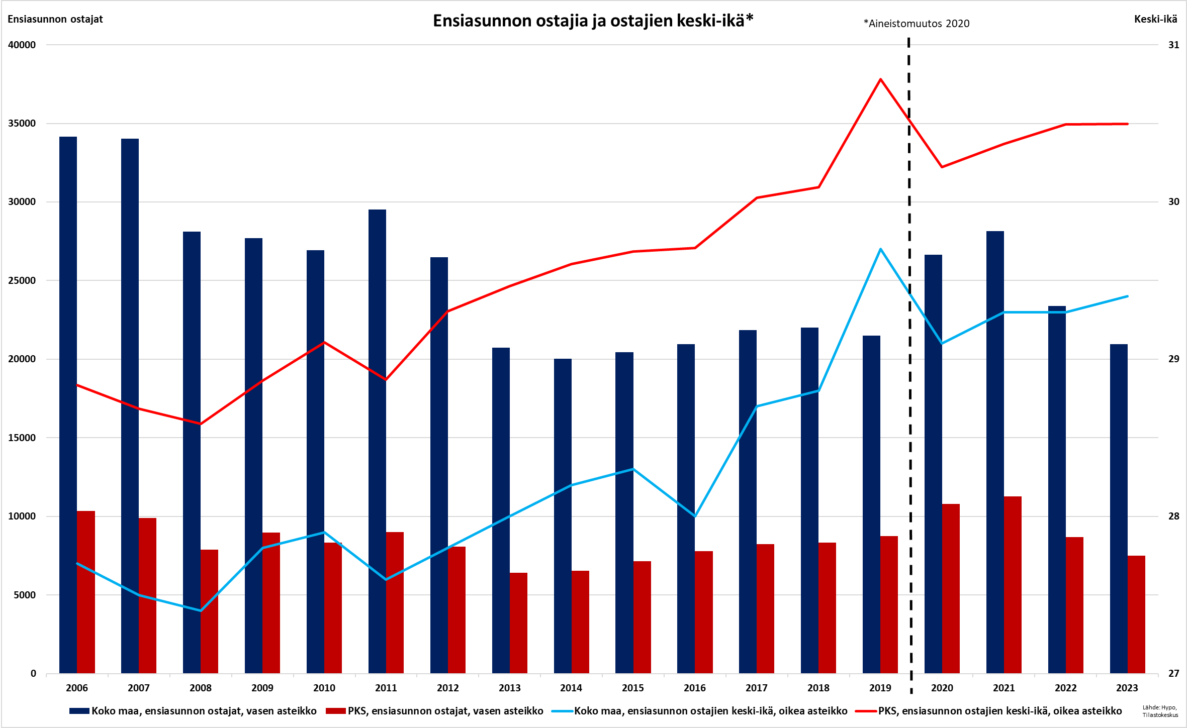 Korona-aika kiihdytti ensiasunnon ostoa ja laski ostoikää. Ensiasunnon ostajien määrä ampaisi koronavuosina korkeimmilleen yli kymmeneen vuoteen ja pudotti ensiasunnon ostajan keski-iän vajaasta 30 vuodesta 29 vuoteen.