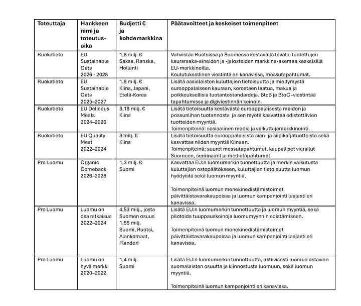 Suomeen jälleen kansainvälisesti kilpailtua EU-rahoitusta – Ruokatieto ja Pro Luomu menestyivät menekinedistämishauissa