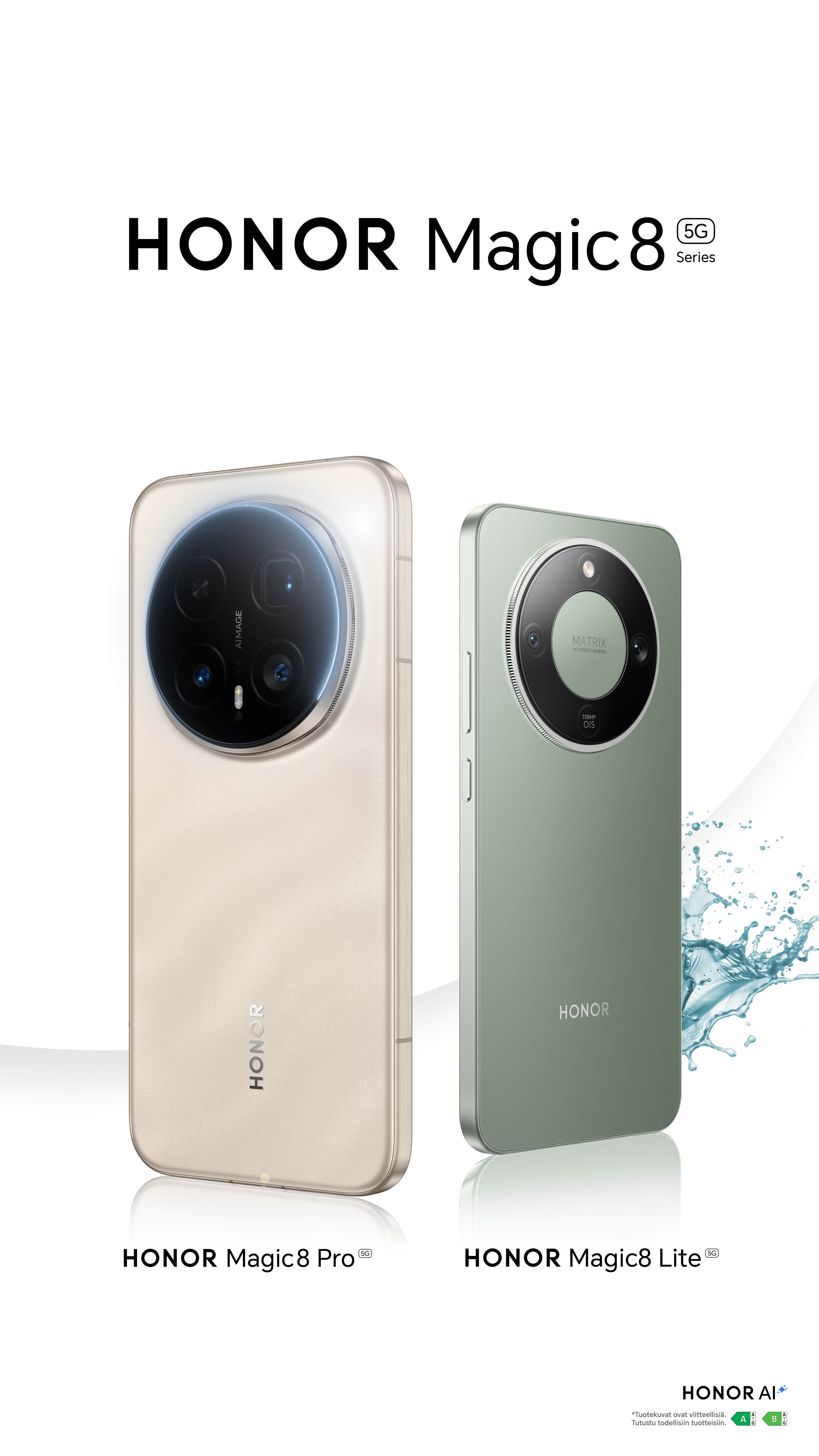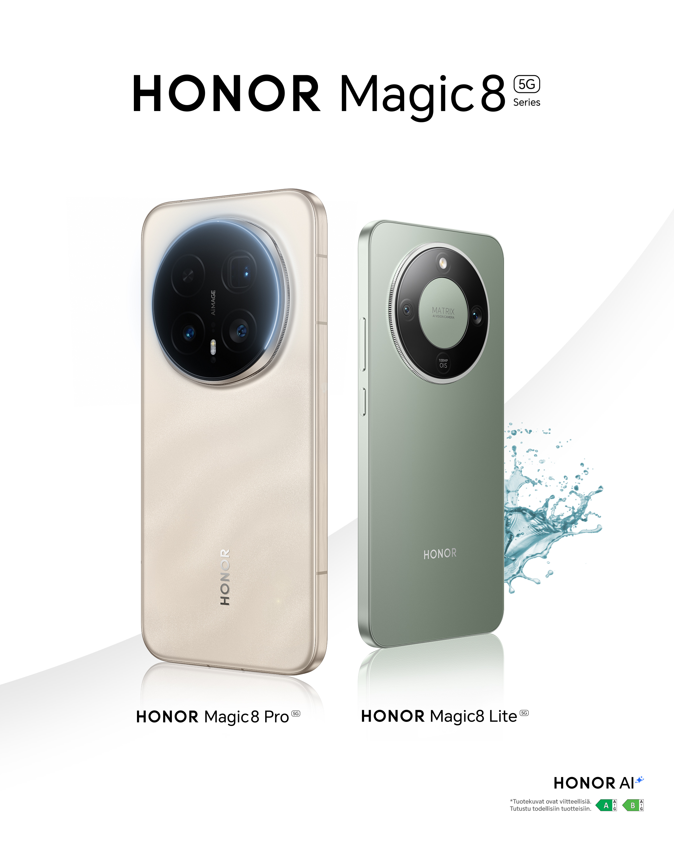 Globaali teknologiabrändi HONOR on julkistanut Euroopassa uuden HONOR Magic8 -sarjan, joka sisältää lippulaivamalli HONOR Magic8 Pron sekä keskihintaluokan HONOR Magic8 Liten. Puhelinten suunnittelun keskiössä ovat luotettavuus, pitkäikäisyys ja päivittäinen suorituskyky. HONOR Magic8 -sarja tuo Eurooppaan alan johtavat kestävyyssertifikaatit, edistyneen akkuteknologian ja tehokkaat tekoälyominaisuudet.
