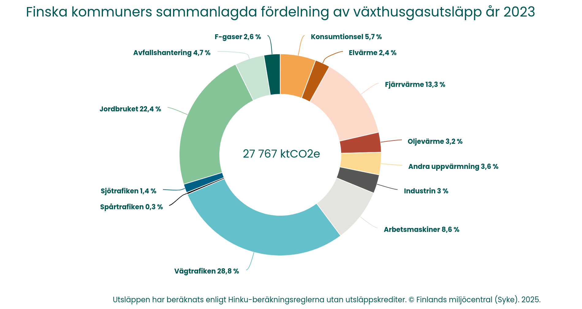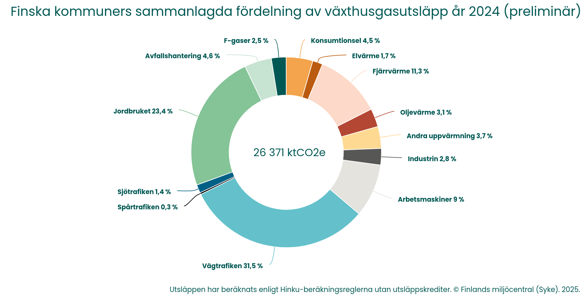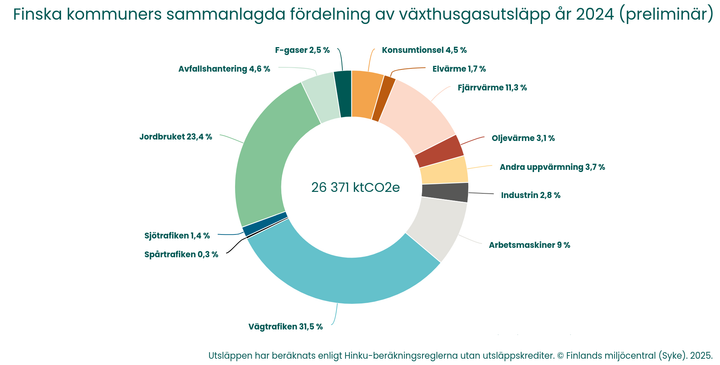 - Fördelningen av Finlands kommuners sammanlagda utsläpp av växthusgaser 2023 (slutlig) och 2024 (preliminär) (pdf)