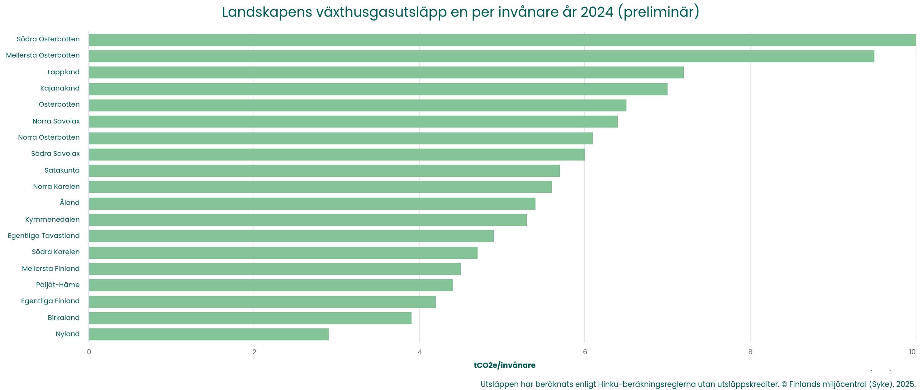 - Utsläppen av växthusgaser per invånare i landskapen 2024 (preliminär) (pdf)
