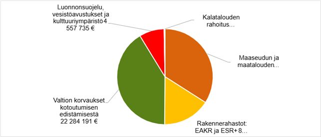| Luonnonsuojelu, vesistöavustukset ja kulttuuriympäristö | 4 557 735 € |