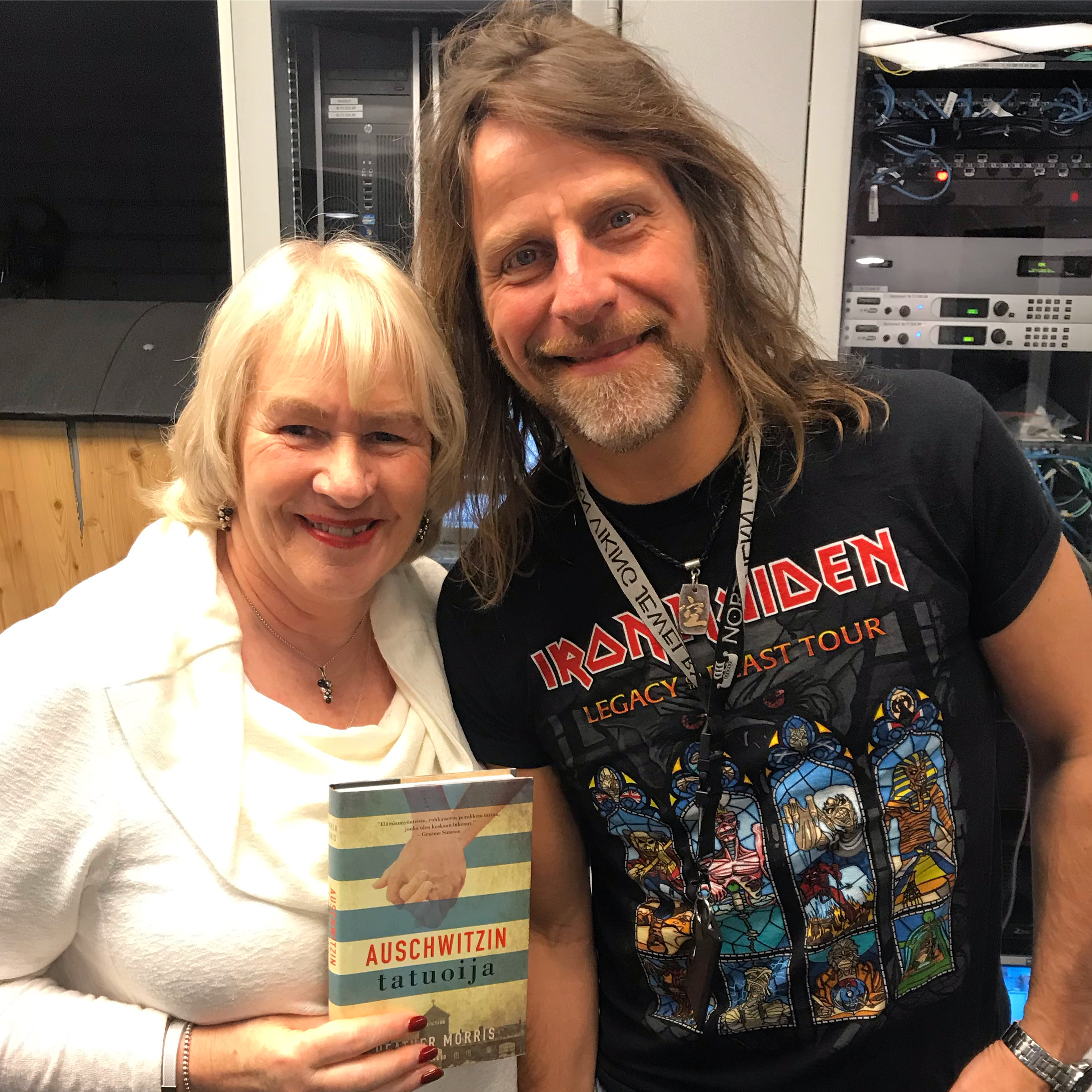 Heather Morris kävi vierailunsa aikana muun muassa Jone Nikulan vieraana studiossa. Kuva vuodelta 2019 Radio Rockin studiossa, kuva Aula & Co