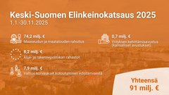 ELY-keskuksen elinkeinokatsaus: Keski-Suomen yritystoimintaan ja maaseudun kehittämiseen yli 91 miljoonaa euroa tammi-marraskuussa 2025