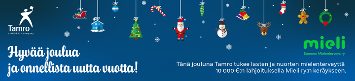 Tamro osallistuu MIELI ry:n joulukeräykseen 10 000 euron lahjoituksella. Lahjoituksen avulla MIELI ry voi tehdä arvokasta työtään nuorten mielenterveyden edistämiseksi. Järjestö kouluttaa aikuisia, jotka kohtaavat nuoria arjessa – kouluissa, harrastuksissa ja kodeissa – jotta heillä olisi keinoja tukea nuoria. Lisäksi MIELI ry tarjoaa keskusteluapua Sekasin-chatissa vuoden jokaisena päivänä. Moni nuori kertoo, että ilman tätä palvelua ja mahdollisuutta puhua ammatti-ihmisen kanssa he olisivat jääneet yksin pahassa olossaan.