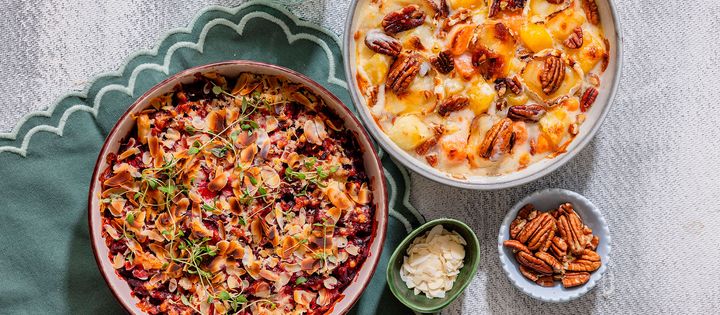 ”Punajuurigratiinin kanssa sopivat esimerkiksi parmesaaniraaste ja mantelilastut ja bataatti-juuresgratiinin pinnalle voidaan lisätä pehmeää vuohenjuustoa, hunajaa ja paahdettuja pekaanipähkinöitä”, vinkkaa apulaistuotepäällikkö Annukka Vasara Apetitilta.