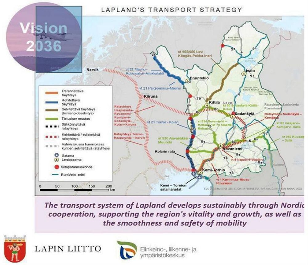 Tornionlaakson neuvosto on yhdessä muiden rahoittajien kanssa teettänyt visioselvityksen rajat ylittävästä rautatieyhteydestä. Visioselvityksen lähtökohtana on Region Norrbottenin rakennekuva uudesta rautatiestä (kuva 1.) joka voidaan kytkeä Suomen rautatieverkostoon Lapin liiton liikennejärjestelmässä (kuva 2.) olevan Tunturiradan kautta.