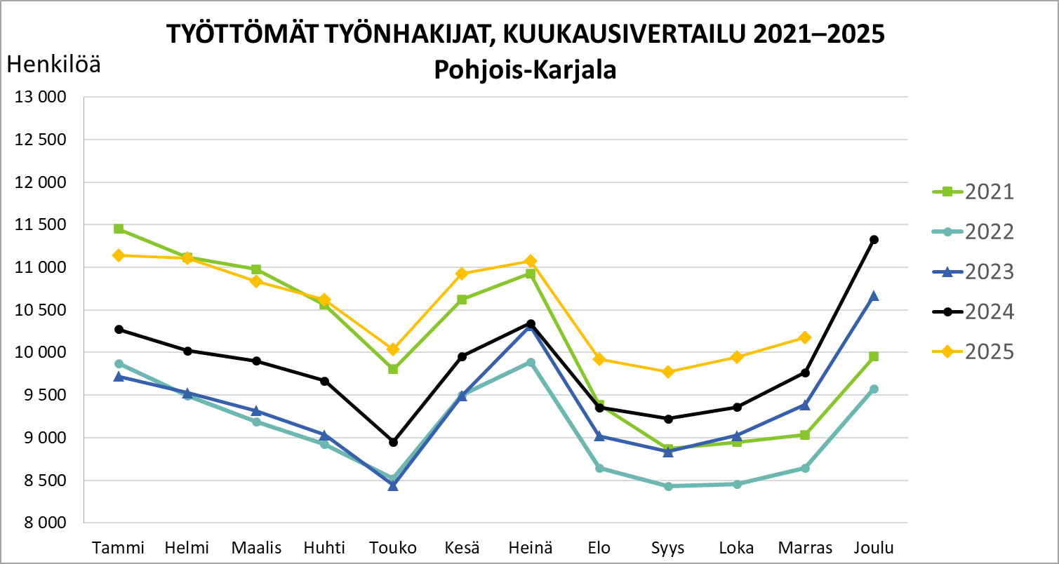 Pohjois-Karjalassa oli marraskuun lopussa 10 179 työtöntä työnhakijaa, joista 717 oli lomautettuna. Vuoden takaiseen verrattuna työttömiä oli 411 henkilöä enemmän (4 %) ja lomautukset kasvoivat 16 henkilöllä ( 2 %).