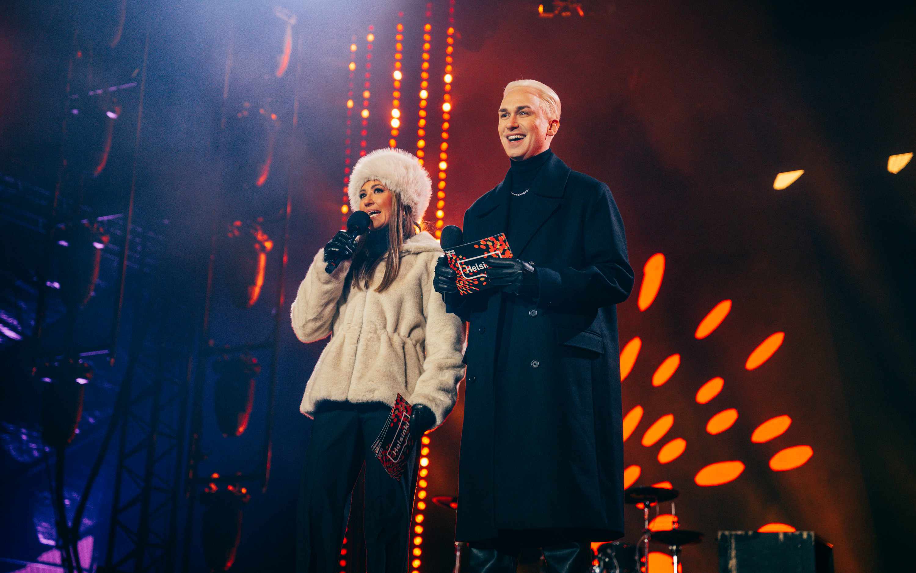Jaana Pelkonen ja Christoffer Strandberg juonsivat Helsingin uudenvuodenjuhlan