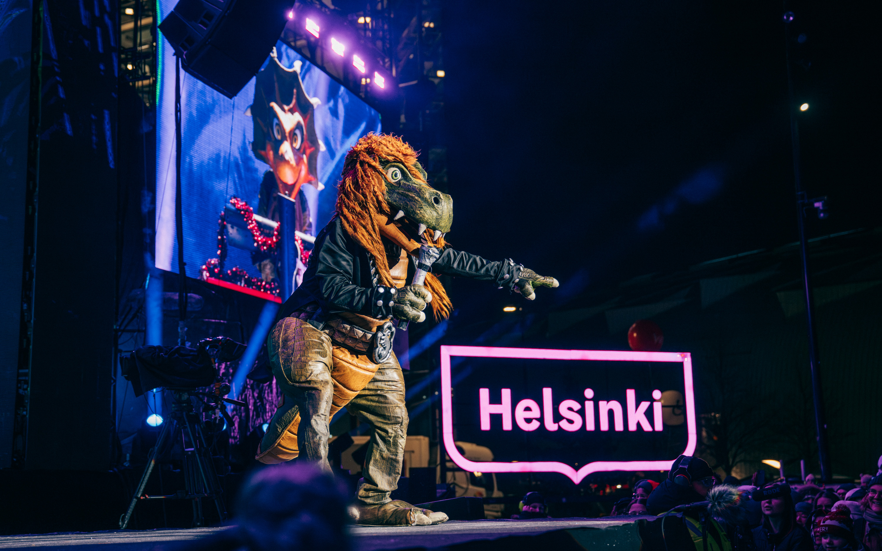 Helsingin uudenvuoden juhlinnan käynnisti alkuillasta koko perheen suosikkiyhtye Hevisaurus räyhäkkäällä show’llaan. Loppuillan konsertissa lavalle nousivat Ares, Erika Vikman ja KAJ, ja vuoden vaihtumisen hetkeä juhlistettiin Bara Bada Bastun sekä näyttävän pyronäytöksen säestämänä. Pormestari Daniel Sazonov toivotti lisäksi puheessaan kaupunkilaisille onnellista ja toiveikasta uutta vuotta.
