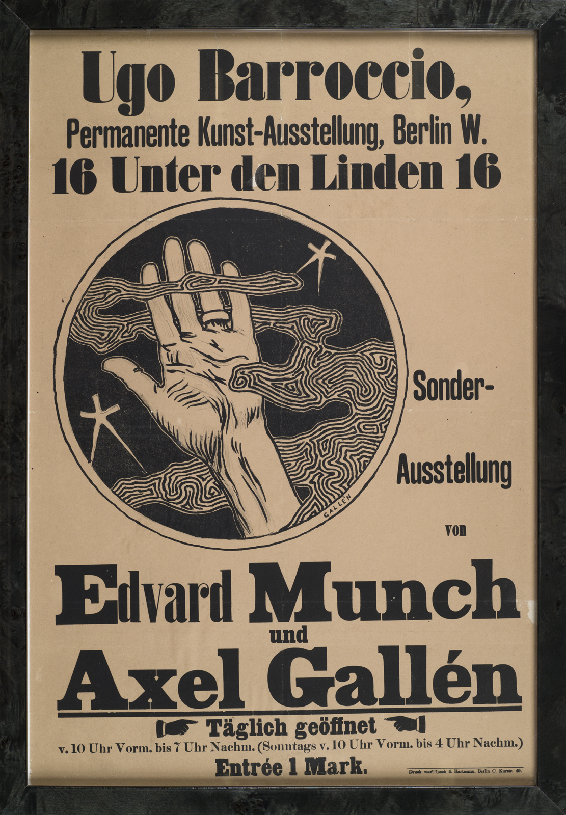 Taiteilijan mustavalkoiseen ilmaisuun painottuva grafiikka sai ansaittua huomiota kansainvälisesti muun muassa saksalaisen Die Brücke -ryhmän keskuudessa. Gallen-Kallela kutsuttiin ryhmän jäseneksi vuonna 1907 ja hän osallistui useisiin ryhmän näyttelyihin. Myös näyttelyssä esillä oleva ikoninen Bil-Bol (1907) tunnetaan ympäri maailmaa suomalaisen julistetaiteen klassikkoteoksena.