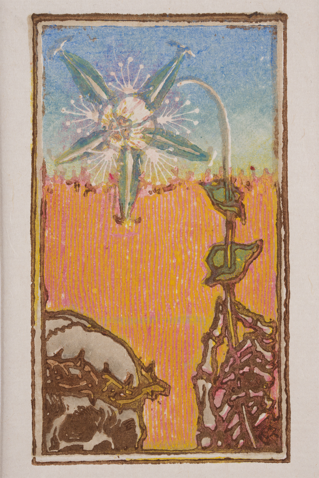 Gallen-Kallela had hoped to receive some sorely needed extra income from his “treasures of miniature art” but in Finland, his contemporary audience shied away from the minimalist artworks. Although printmaking did not prove to be financially profitable, despite his expectations, making the art brought great joy to the artist: “If there was any hope that I could earn something with my woodblock prints, I would rather work on them, for I truly make them con amore.”