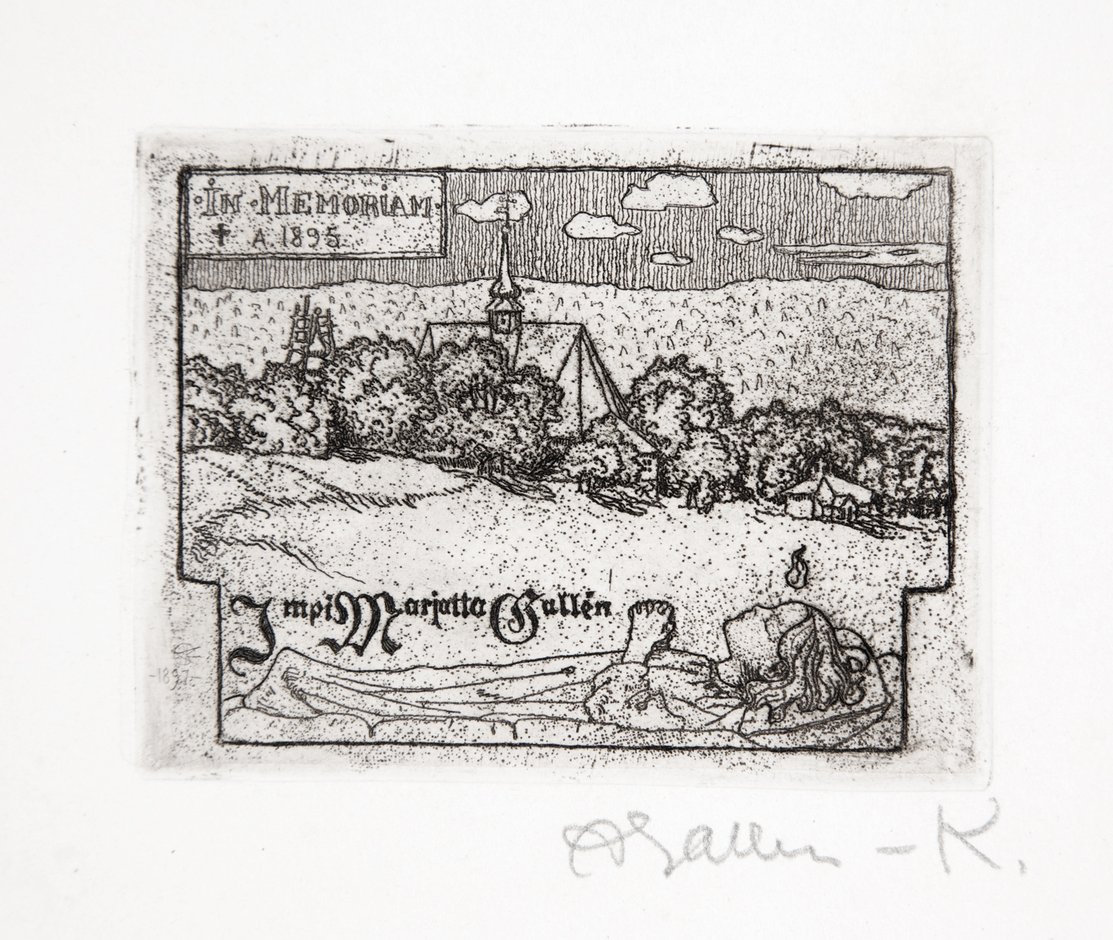 Gallen-Kallela, who followed trends in the art world closely, learned the basics of etching in Berlin in 1895 and later worked independently in Kalela to familiarise himself with the woodcut technique. The artist was interested in various techniques and soon moved on to lithography and poster art, developed his printmaking techniques and shared his expertise with his students, such as Hugo Simberg (1873–1917) and Eric O. W. Ehrström (1881–1934).
