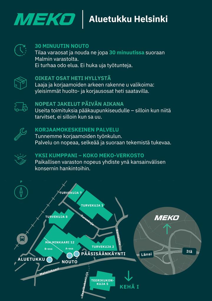 Paikka: MEKO Aluetukku Helsinki, Malminkaari 12, 00701 Helsinki