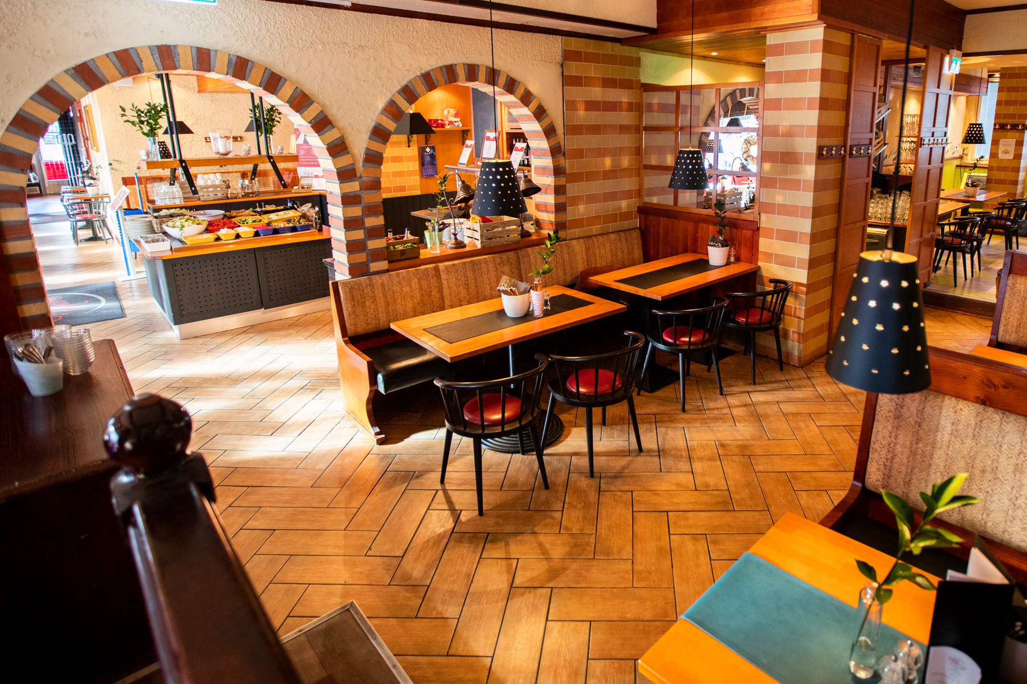 ravintolasali, neljä kabinettia, kesäterassi