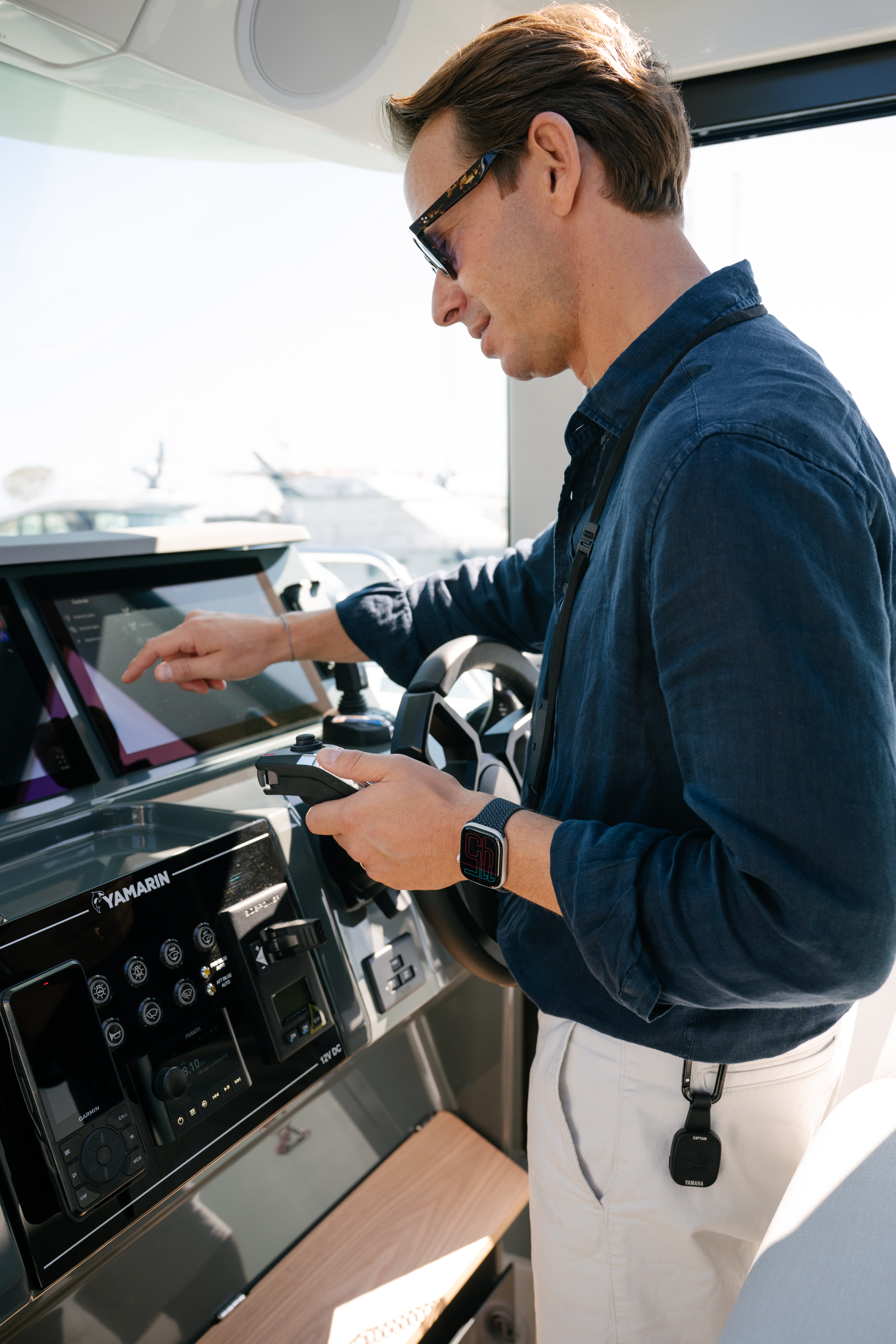 Lanseringsversionen av Aura Cabin är utrustad med dubbla 16” Yamarin Q-skärmar, som samlar navigation, motordata, väderprognoser och styrning av båtens system i ett intuitivt gränssnitt.