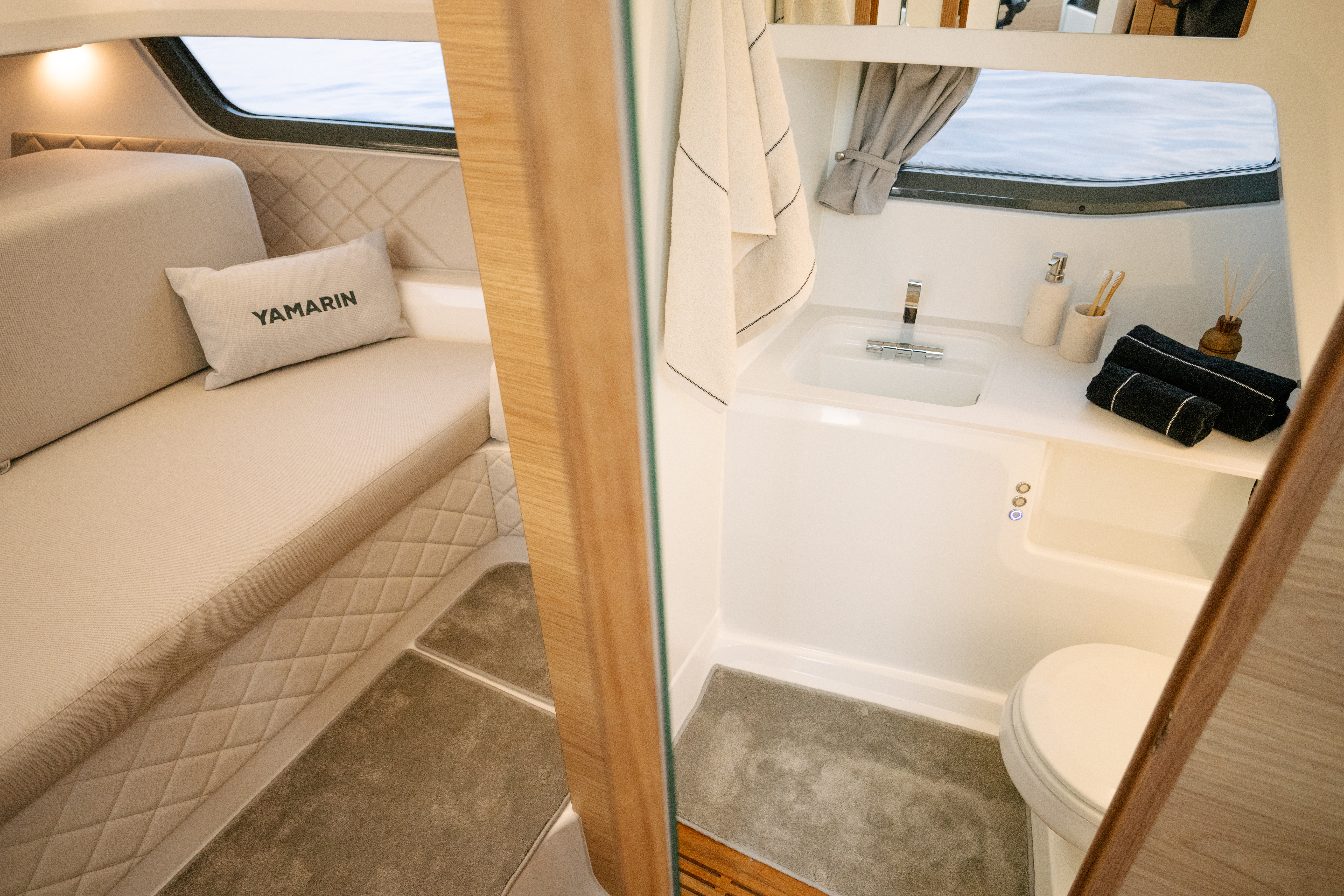 Yamarin Aura Cabin anpassar sig smidigt till olika båtkulturer och klimat. I norra Europa, där Yamarin har sina rötter, fungerar modellen som en genuin året runt-pendlarbåt och familjekryssare, med gott om förvaringsutrymmen och bekväma sovplatser. Den slutna styrhytten med stora skjutbara sidodörrar, vikbar akterdörr och en vidsträckt vindruta som erbjuder trygg och bekväm navigering även under krävande förhållanden.