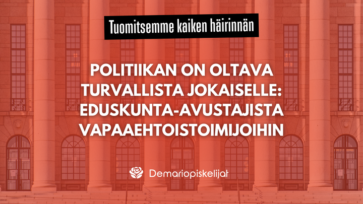 Demariopiskelijat: Politiikan on oltava turvallista jokaiselle – eduskunta-avustajista vapaaehtoistoimijoihin
