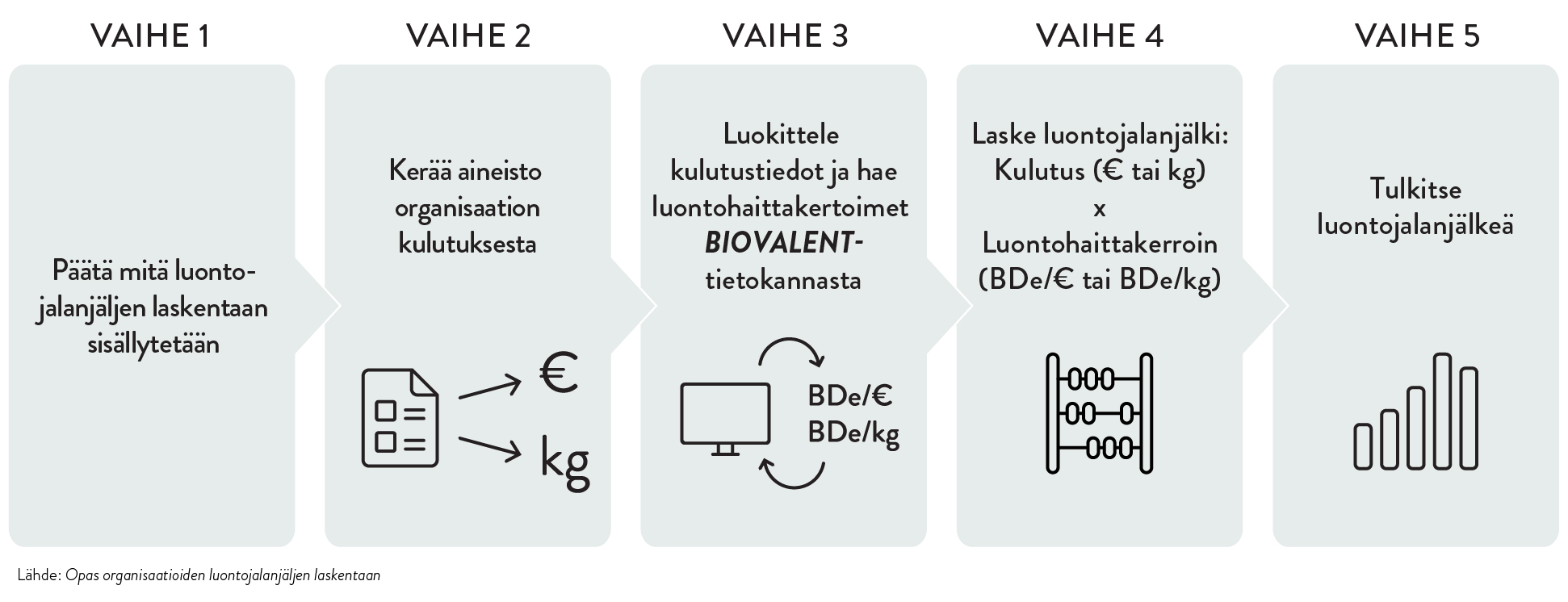 Vaihe 1: Päätä, mitä luontojalanjäljen laskentaan sisällytetään