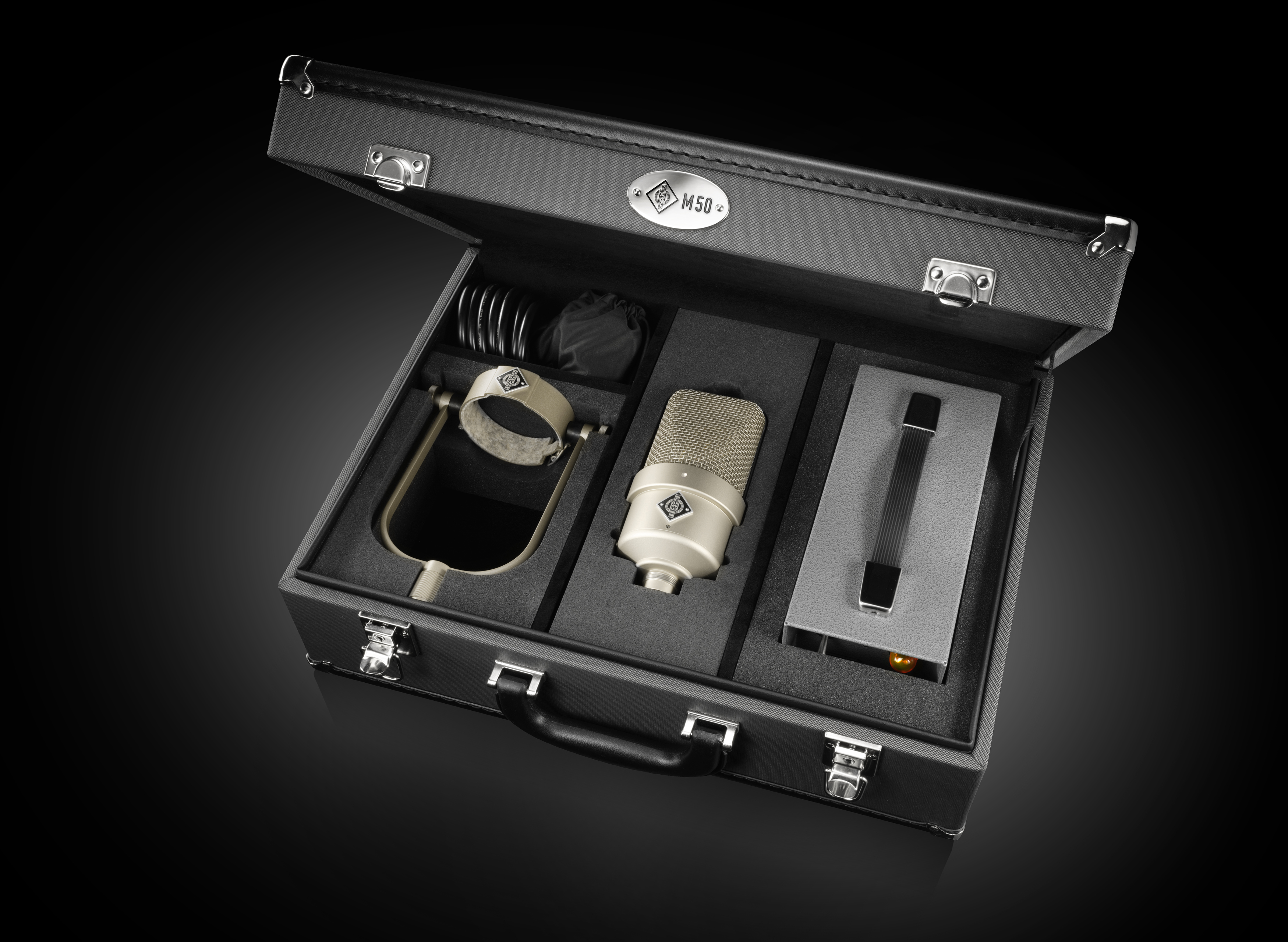 The M 50 V combines the original circuit design with a modern, ultra-low-noise subminiature tube and an RF-proof connector to ensure immunity against interference in today’s environments. The included NM V power supply automatically adapts to local mains voltage and supports both the new M 50 V and historical M 50 microphones.