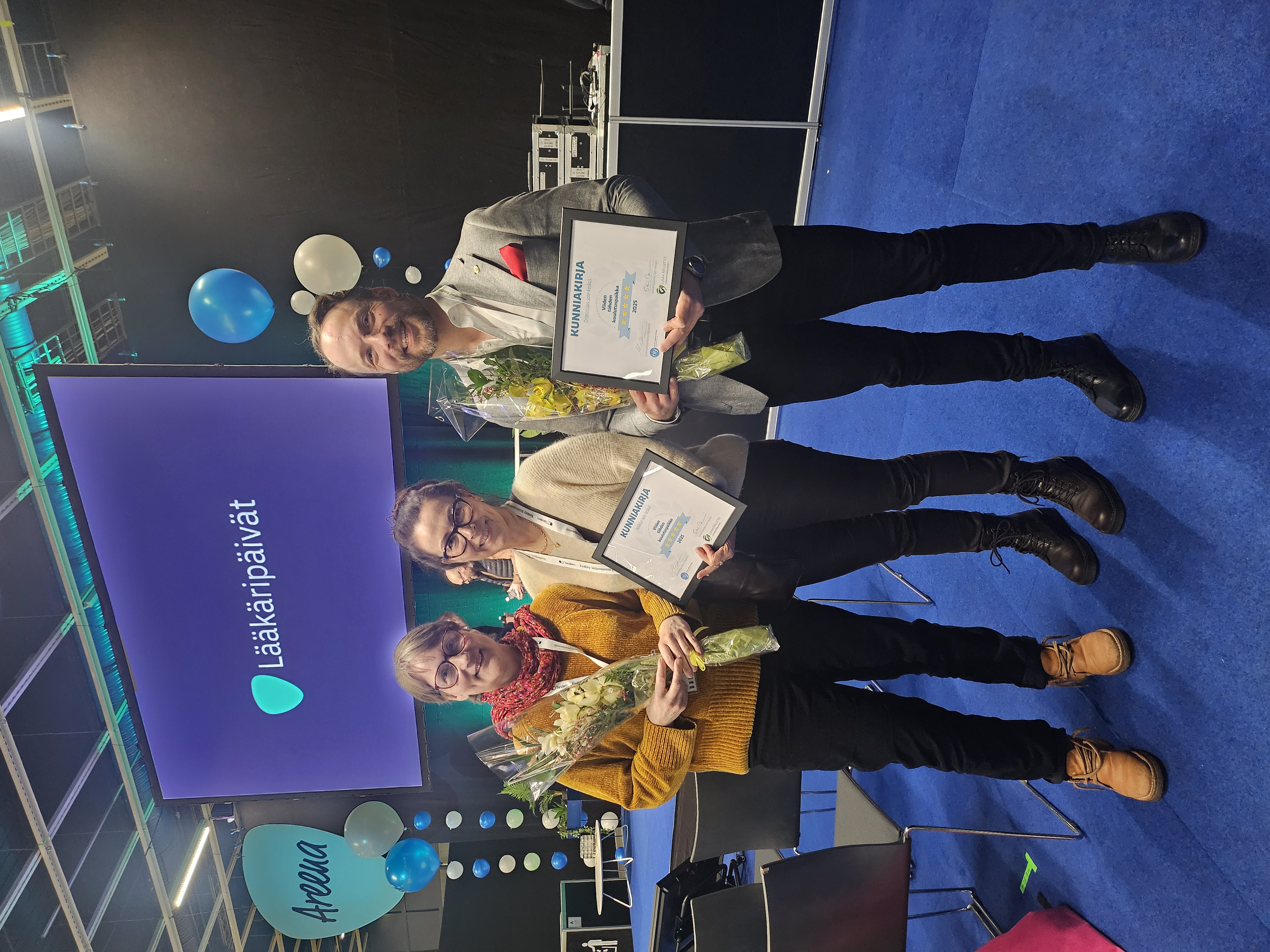 Korpi oli mukana, kun Hollolan ja Orimattilan sote-keskusten edustajat vastaanottivat tunnustuksen menestymisestä vuosittaisilla Lääkäripäivillä.