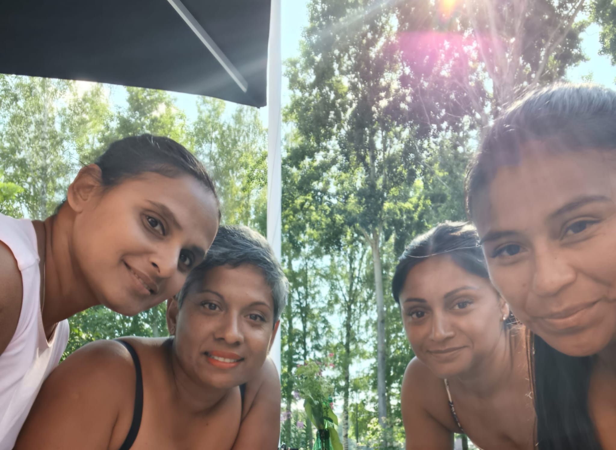 Siivet ja Juuret -tapahtuman järjestäjiä, kuvassa vasemmalta oikealle Sophie Åberg, Anu-Rohima Mylläri, Sadhi Luokomaa ja Ruby Nurmela. Kuvassa olevien lisäksi järjestäjäporukassa myös Parvathi Willberg. Ruby Nurmela