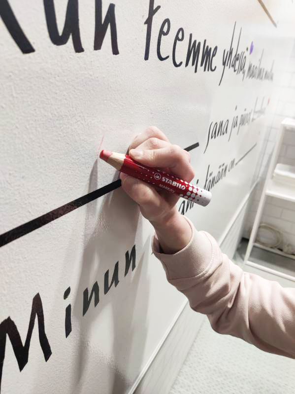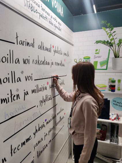 Wulffilaiset tapaavat tammikuun Educa-messuilla opetusalan ja varhaiskasvatuksen ammattilaisia. Educan teema oikeus opettamisen ja oppimisen iloon näkyy Wulffin osastolla Sanojen voima -stooriseinässä: valkotauluseinällä olevaa tarinaa saa täydentää itselle merkityksellisillä ja ajankohtaisilla sanoilla. Samalla pääsee kokeilemaan uutta liuotinvapaata, hajutonta ja tahraamatonta STABILO MARKdry -valkotaulukynää, joka on nopeasti noussut suosituksi vaihtoehdoksi perinteisille valkotaulutusseille. PEFC-sertifioidusta puusta valmistetut kynät sopivat myös fläppitaulukäyttöön.