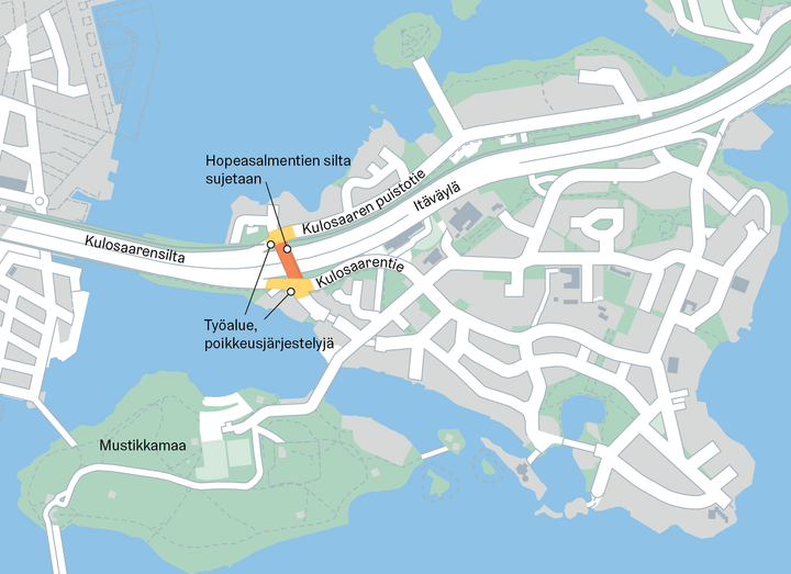 Itäväylän ylittävä silta suljetaan korjauksen ajaksi Kulosaaressa