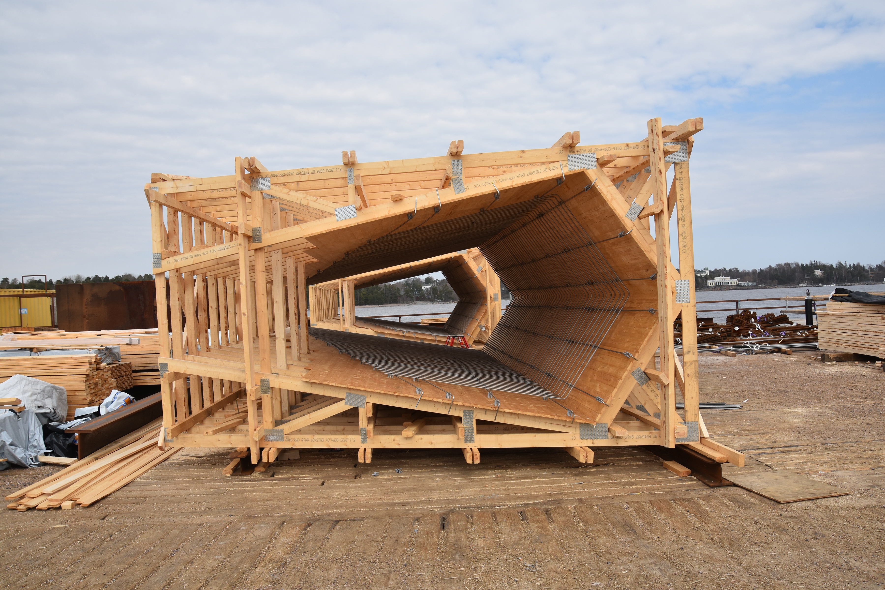 Puinen muotti Kruunuvuorensillan betonirakenteiden valamiseen.